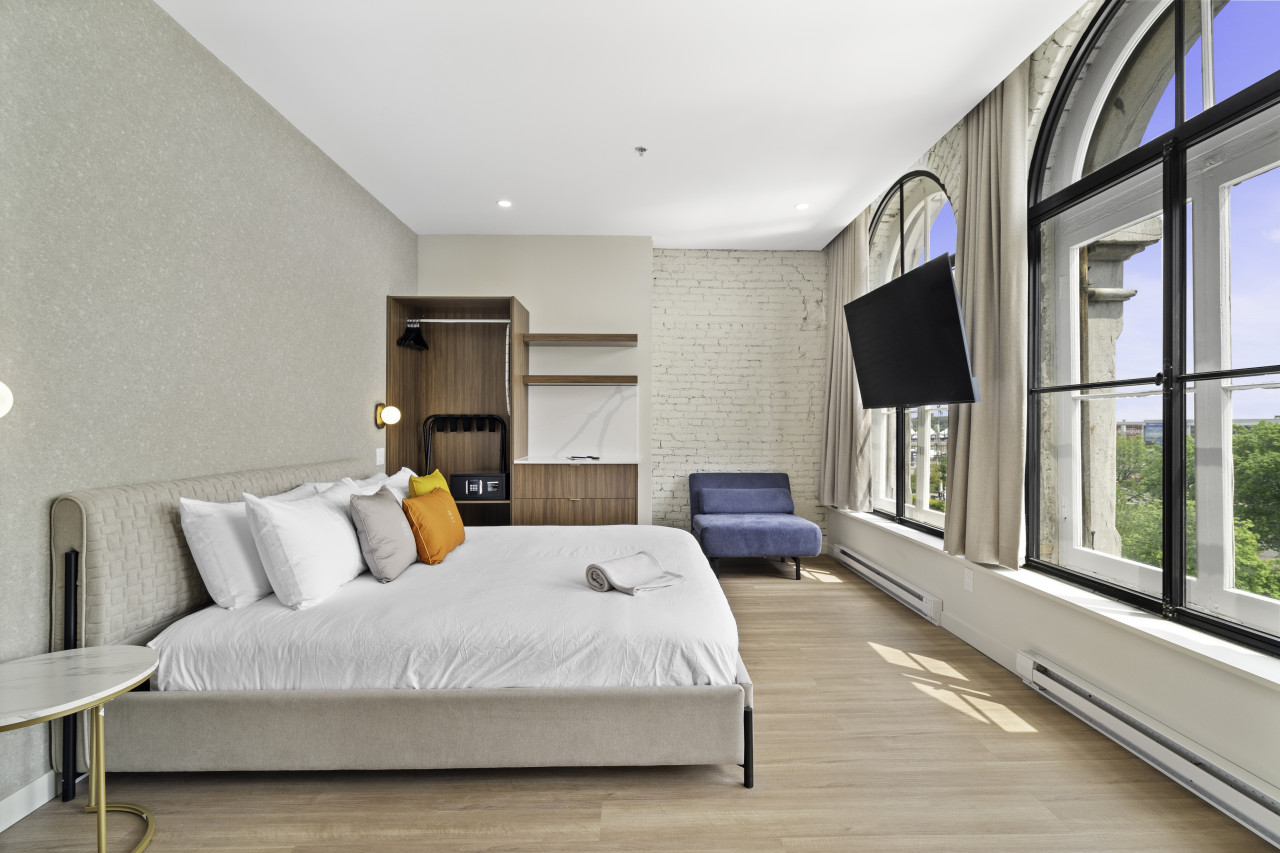 Nestled amidst the cobblestone streets and centuries-old architecture, Arcadia Hotel Boutique invites you to experience the essence of Montreal's rich heritage with a touch of modern elegance. Every room boasts original arched windows, framing breathtaking views of either the majestic Fleuve St-Laurent or the enchanting streets of Old Montreal, ensuring a memorable stay for solo adventurers, couples, and families alike.